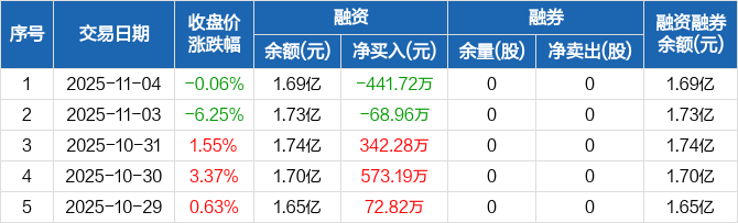 菱电电控:融资净偿还441.72万元,融资余额1.69亿元(11-04)