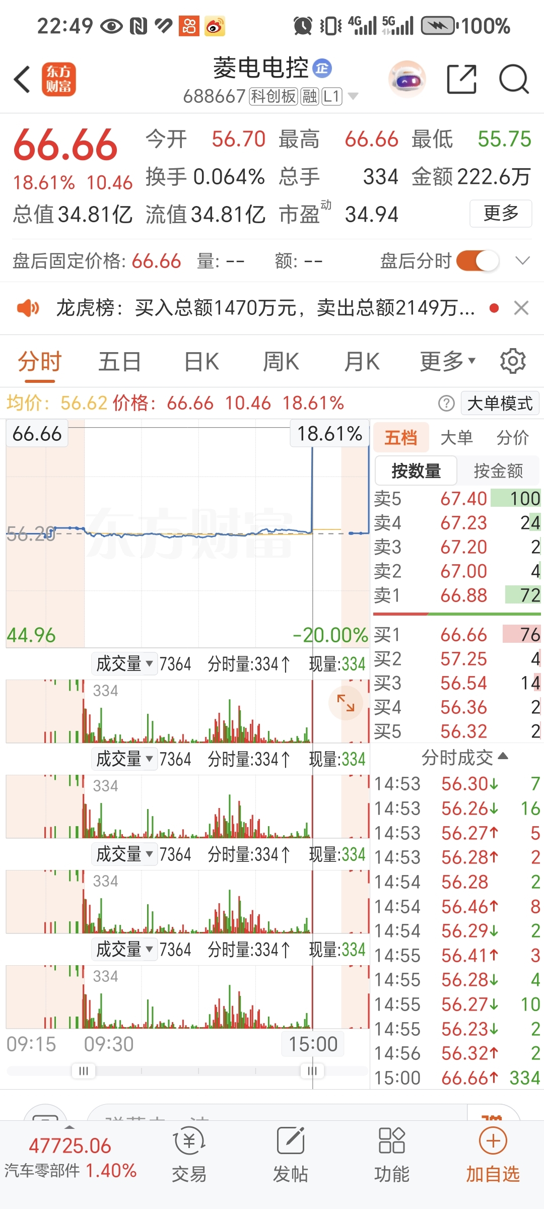 $菱电电控(SH688667)$ 可科创板223万就拉起来了