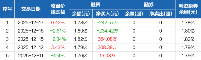 菱电电控:融资净偿还242.57万元,融资余额1.78亿元(12-17)