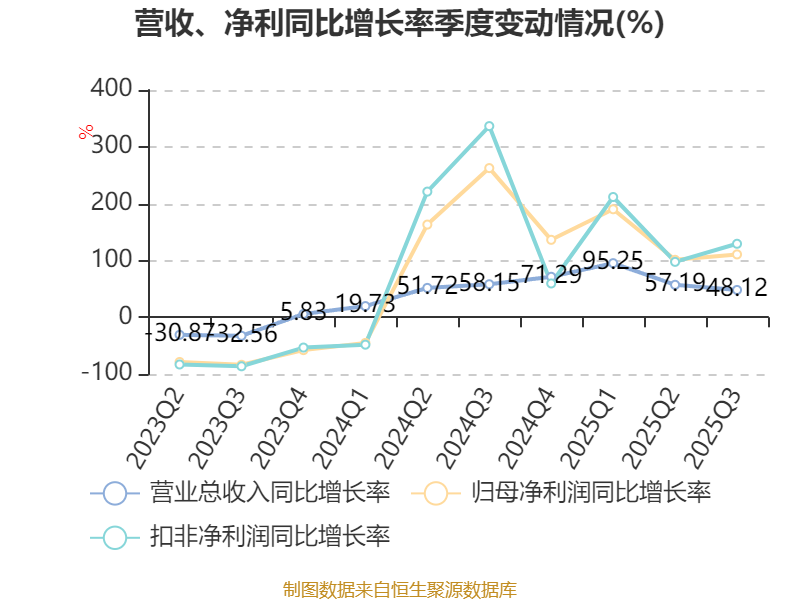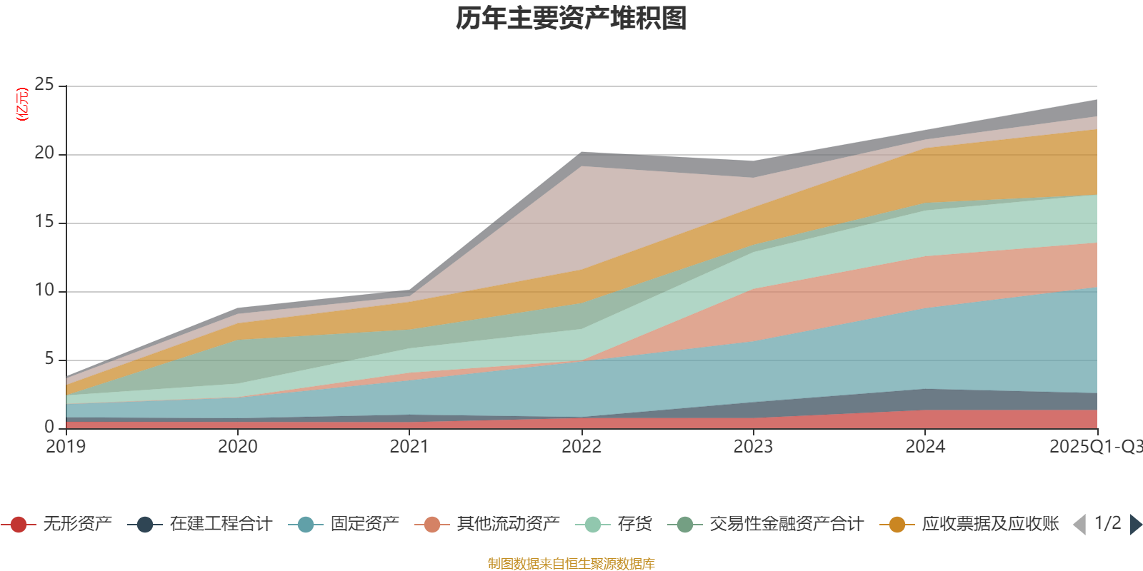 资产重大变化方面,截至2025年三季度末,公司固定资产较上年末增加31.28%,占公司总资产比重上升5.17个百分点;其他流动资产较上年末减少14.33%,占公司总资产比重下降3.88个百分点;交易性金融资产合计较上年末减少100%,占公司总资产比重下降2.57个百分点;在建工程合计较上年末减少20.2%,占公司总资产比重下降1.96个百分点。