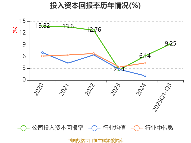 盈利能力方面, 2025年前三季度公司加权平均净资产收益率为7.72%,同比上升3.3个百分点。公司2025年前三季度投入资本回报率为9.25%,较上年同期上升4.86个百分点。