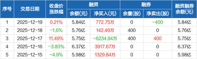 鼎通科技:融资净买入772.75万元,融资余额5.84亿元(12-19)
