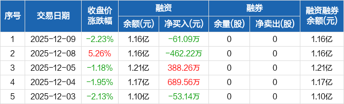 聚石化学:融资净偿还61.09万元,融资余额1.16亿元(12-09)