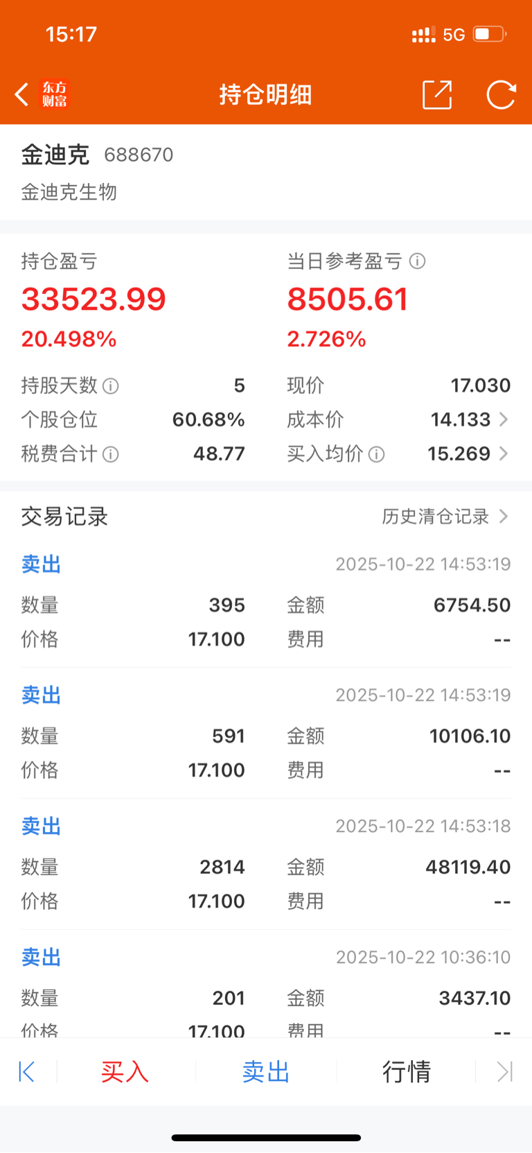 $金迪克(SH688670)$ 17.1卖了3分之一