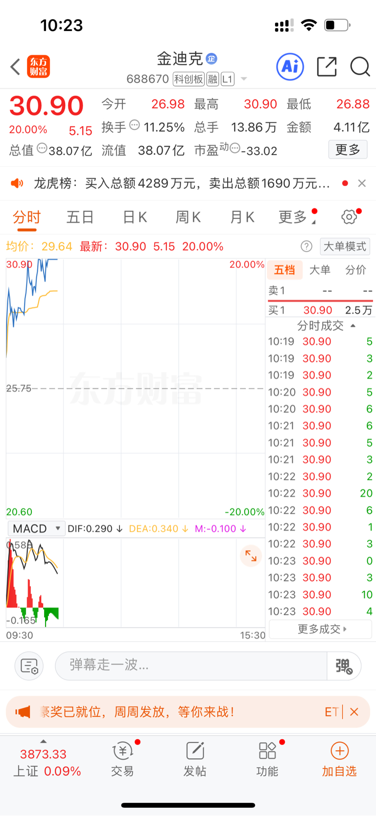 $金迪克(SH688670)$ 再次涨停,给力