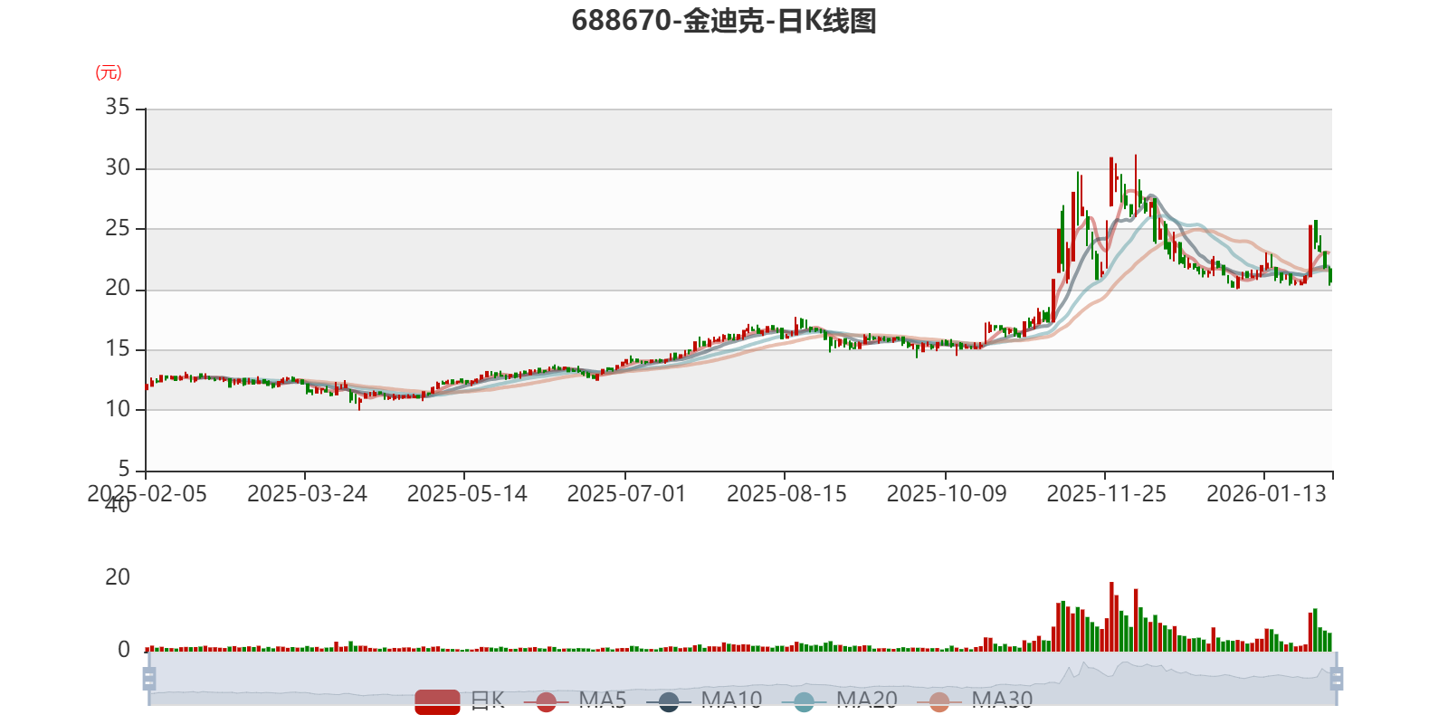 中证智能财讯金迪克(688670)1月30日晚间披露2025年度业绩预告,预计2025年归母净利润亏损1.6亿元至1.8亿元,上年同期亏损9350.28万元;扣非净利润亏损1.65亿元至1.85亿元,上年同期亏损1.06亿元。以最新收盘价计算,市净率(LF)约2.14倍,市销率(TTM)约21.84倍。