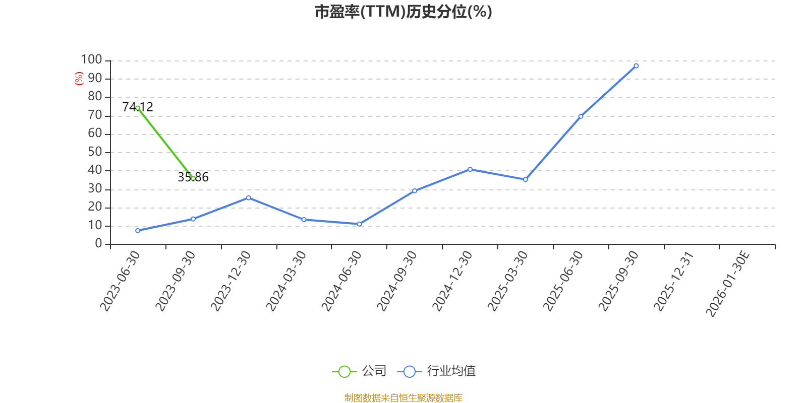 市盈率、市净率为负时,不显示当期分位数,会导致折线图中断。