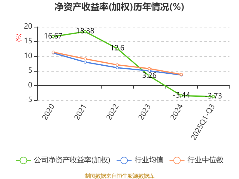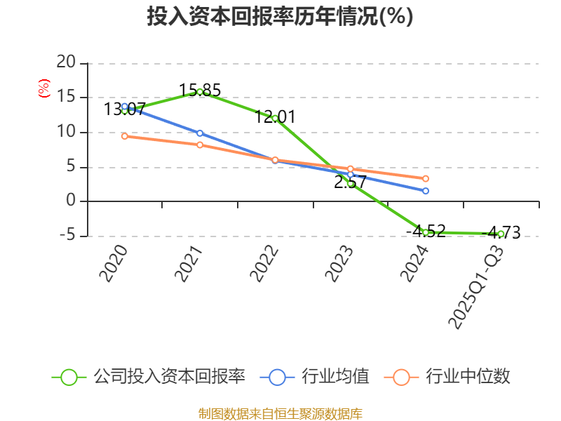 盈利能力方面, 2025年前三季度公司加权平均净资产收益率为-3.73%,同比下降2.73个百分点。公司2025年前三季度投入资本回报率为-4.73%,较上年同期下降3.14个百分点。