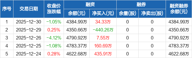 碧兴物联:融资净买入34.33万元,融资余额4384.99万元(12-30)