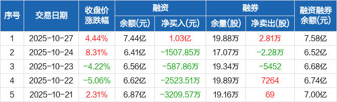 金盘科技:融资净买入1.03亿元,融资余额7.44亿元(10-27)
