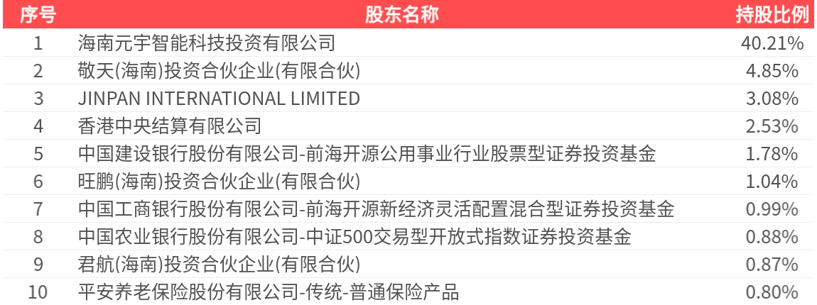 公司股东户数为1.49万户,前十大股东持股数量为2.62亿股,占总股本比例为57.04%,前十大股东持股情况如下: