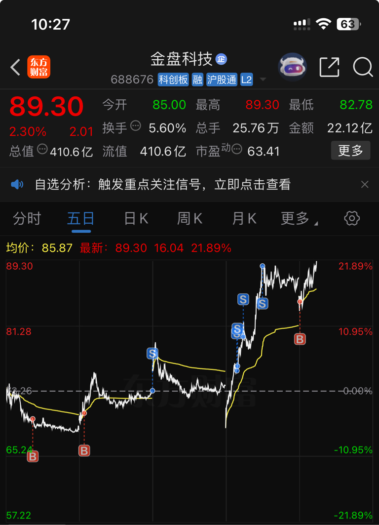 开盘直接集合竞价85下单,没挂3日线83.78有点可惜。