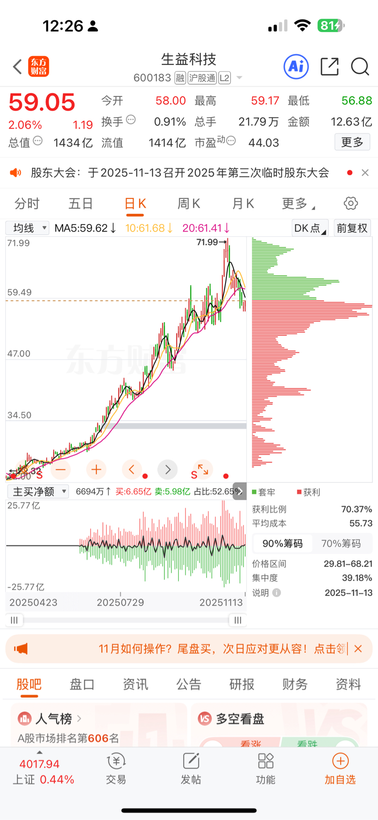 和生益科技差不多吧,一个算力芯片覆铜板龙头,一个算力电力设备龙头,走势也一模一样