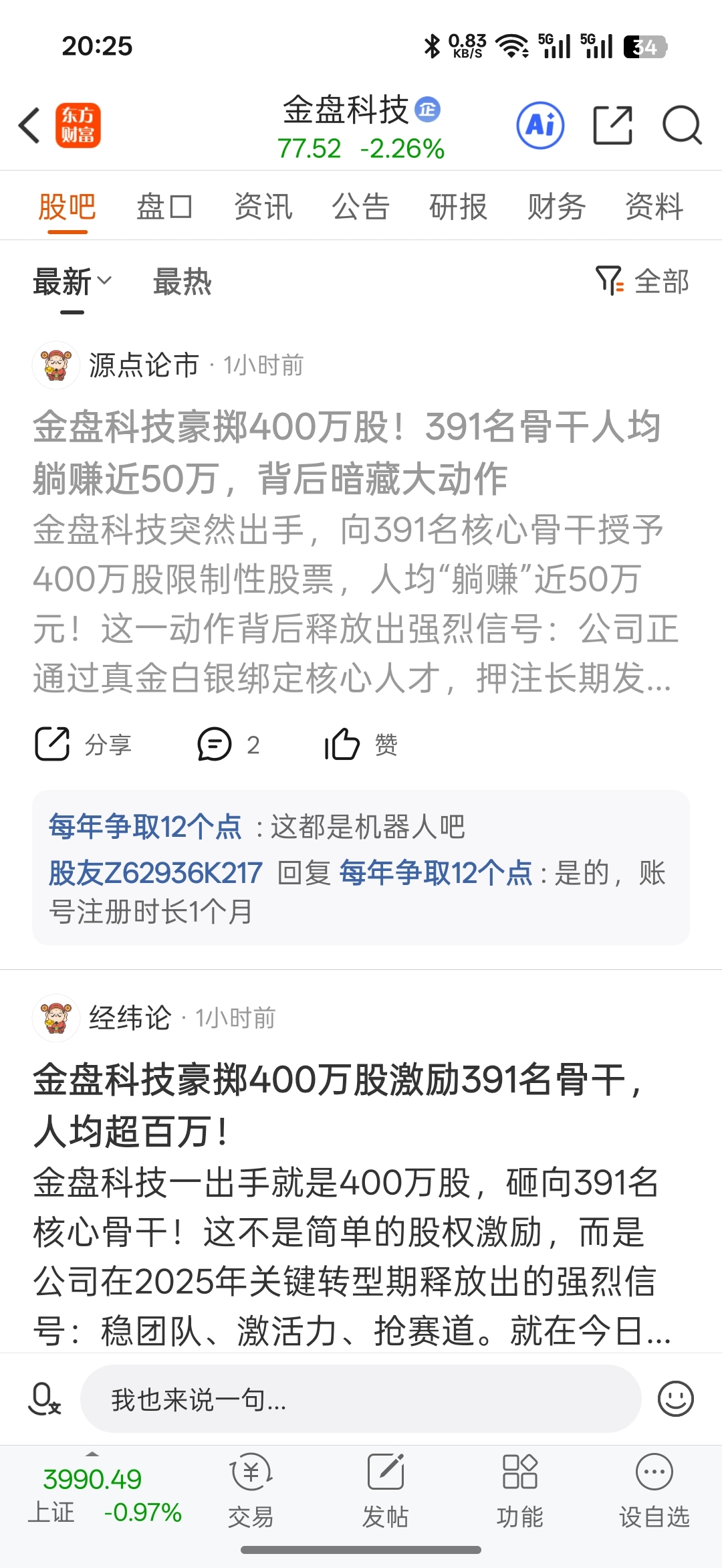 $金盘科技(SH688676)$ 有意思,很多注册一个月的账号同时发这个,这种情况我已经遇到过很多次了
