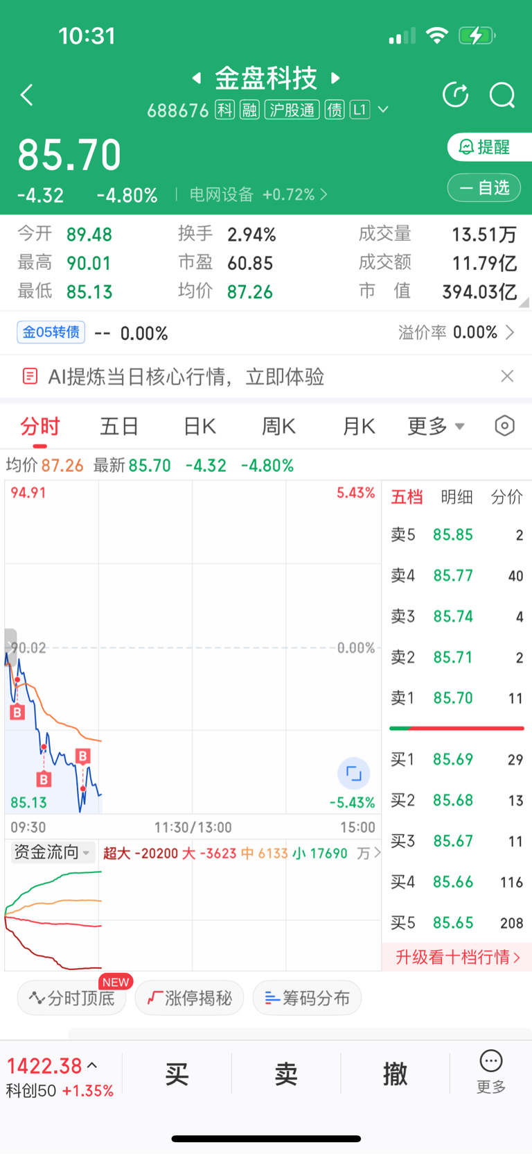 $金盘科技(SH688676)$ 难道今天只有我在亏钱,补仓好惨