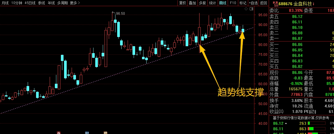 $金盘科技(SH688676)$ 中期趋势走得比较稳健,一直是震荡向上的拉升,中间没有过明显的回落走势,短线来看,重点关注脚底趋势线的支撑情况,能稳住就没问题,但有效跌破就需要注意是否要走回落调整了,需要控制仓位应对。#炒股日记# #收盘点评#