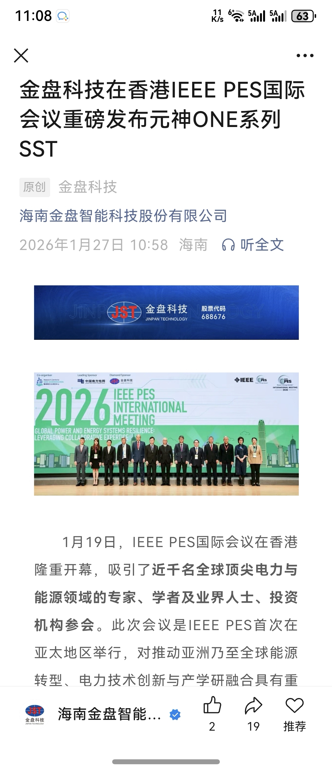 $金盘科技(SH688676)$ 金盘科技在香港IEEE PES国际会议重磅发布元神ONE系列SST固态变压器