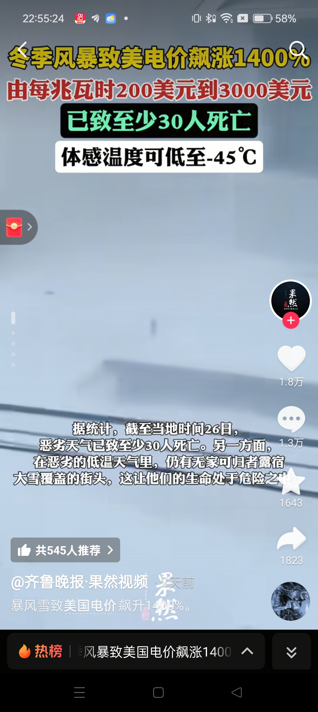 美国电价涨1400%,寒冬冻死人,老美这事在发酵,抖音热门了!