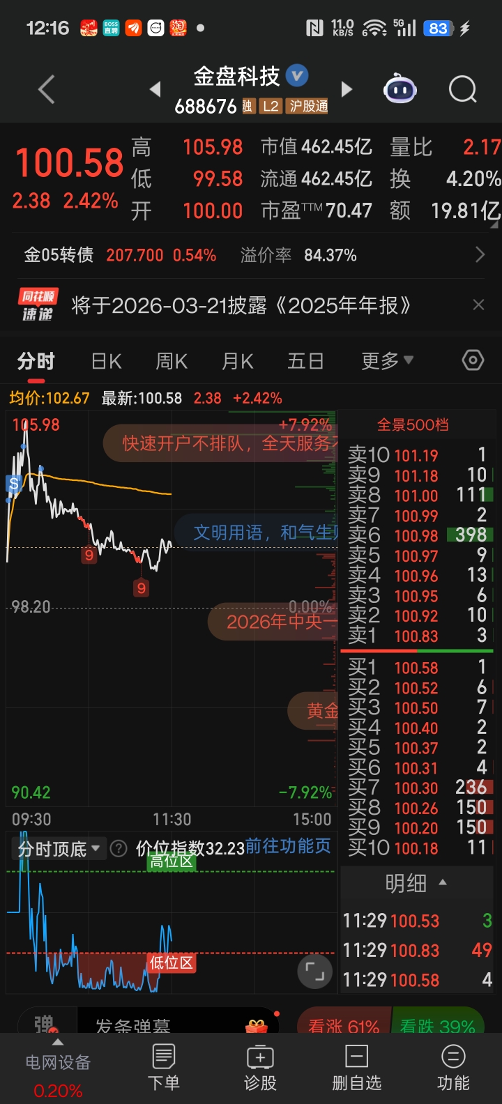 $金盘科技(SH688676)$ 昨天进的,赚了7个点跑了,几次突破不了就坚决走人。有机会再来