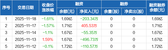 海泰新光:融资净偿还203.34万元,融资余额1.69亿元(11-18)