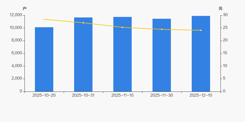 2025年10月20日至今,公司股东户数显著增长,区间涨幅为17.65%。2025年10月20日至2025年12月10日区间股价下降15.24%。