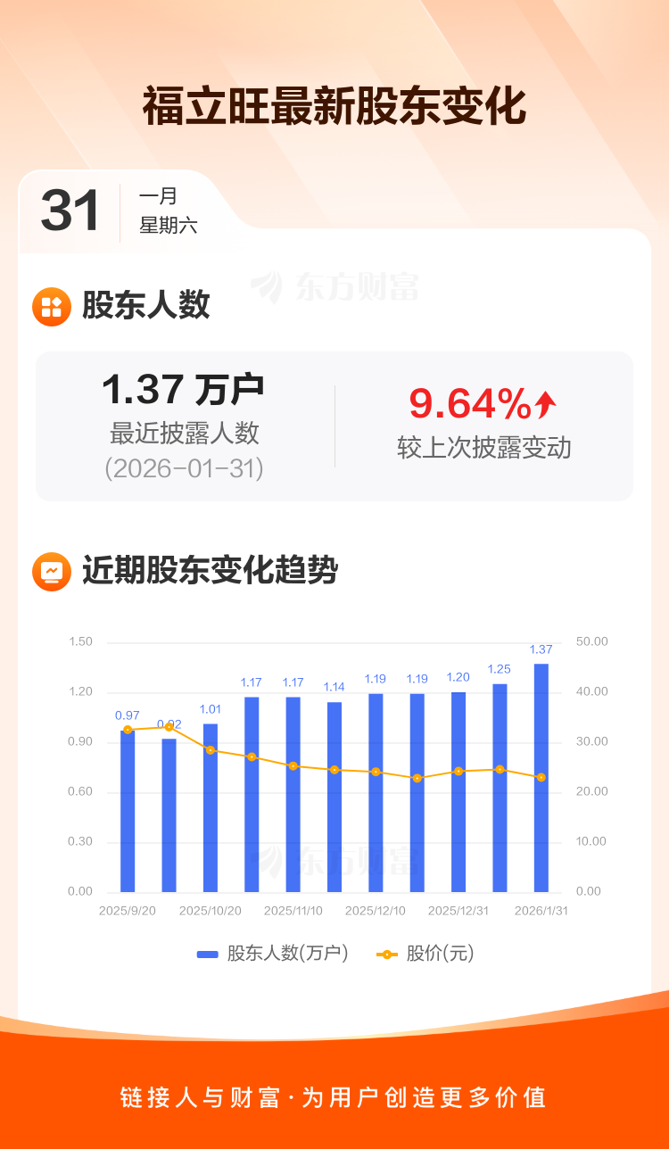福立旺:截至1月31日最新股东户数1.37万户,较上期增加9.64%
