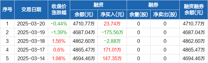 科汇股份:融资净买入23.74万元,融资余额4710.77万元(03-20)