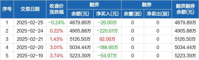 霍莱沃:融资净偿还26万元,融资余额4879.89万元(02-25)