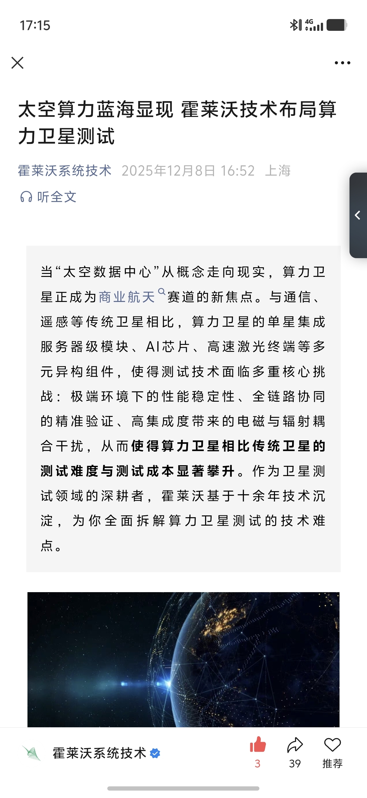 $霍莱沃(SH688682)$ 商业航天年底再炒就要找实打实能出业绩的,毕竟财报季要来了。霍莱沃是个很好选择!