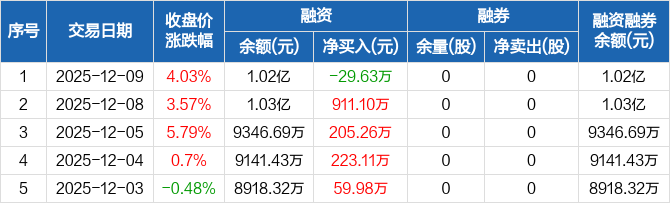 霍莱沃:融资净偿还29.63万元,融资余额1.02亿元(12-09)