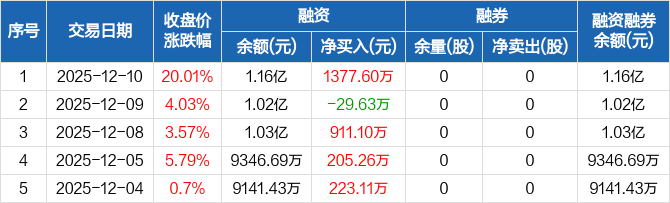 霍莱沃:融资净买入1377.6万元,融资余额1.16亿元(12-10)