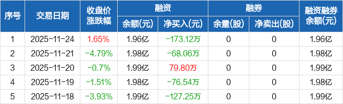 莱尔科技:融资净偿还173.12万元,融资余额1.96亿元(11-24)