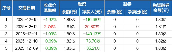 莱尔科技:融资净偿还110.68万元,融资余额1.8亿元(12-15)