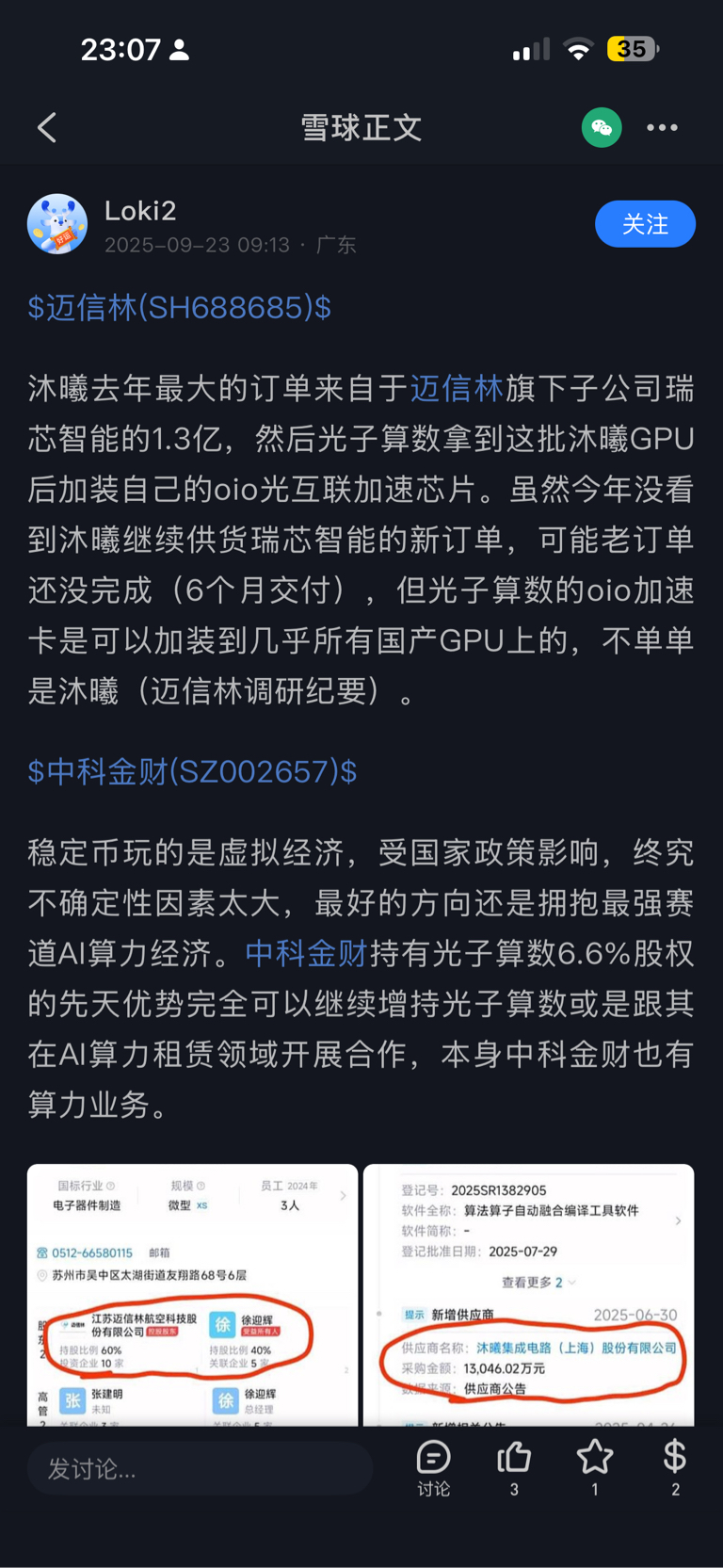 $迈信林(SH688685)$ 沐曦股份科创板IPO即将上会,迈信林是沐曦股份的总代吧