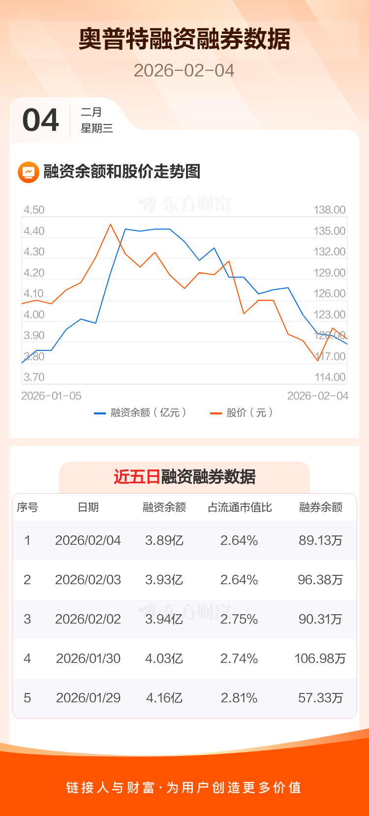 交易所最新数据显示,奥普特于2026年2月4日获融资买入363.63万元,融资偿还784.75万元,当日融资净偿还421.12万元。目前,该股融资余额3.89亿,占流通市值比例为2.64%。