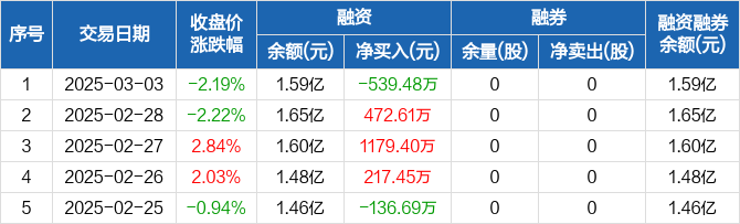 凯因科技:融资净偿还539.48万元,融资余额1.59亿元(03-03)
