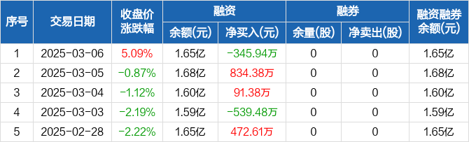 凯因科技:融资净偿还345.94万元,融资余额1.65亿元(03-06)