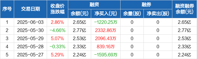凯因科技:融资净偿还1220.25万元,融资余额2.65亿元(06-03)