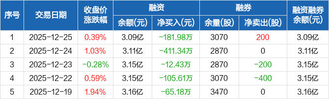 凯因科技:连续5日融资净偿还累计776.54万元(12-25)