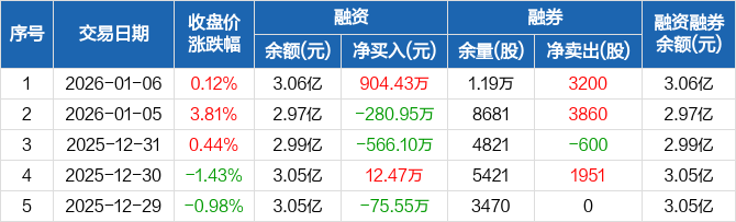 凯因科技:融资净买入904.43万元,融资余额3.06亿元(01-06)