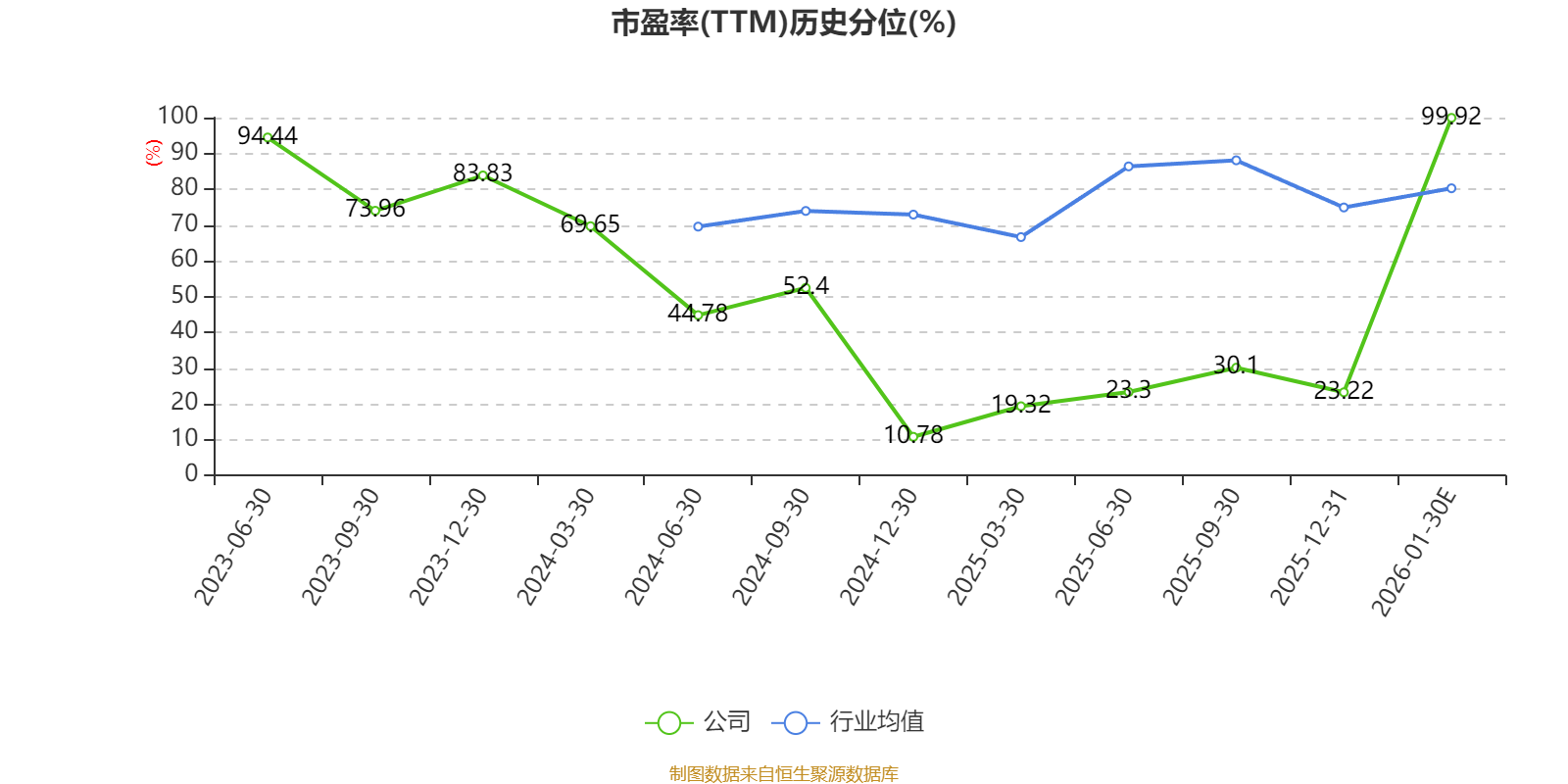 以本次披露业绩预告均值计算,公司近年市盈率(TTM)图如下所示: