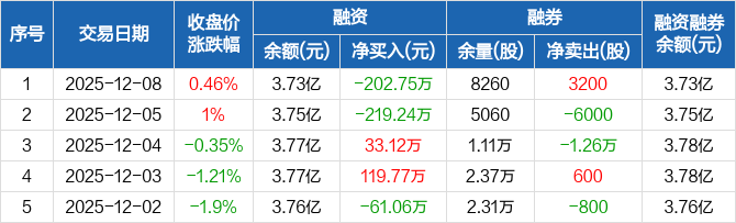 纳微科技:融资净偿还202.75万元,融资余额3.73亿元(12-08)