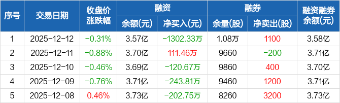 纳微科技:融资净偿还1302.33万元,融资余额3.57亿元(12-12)