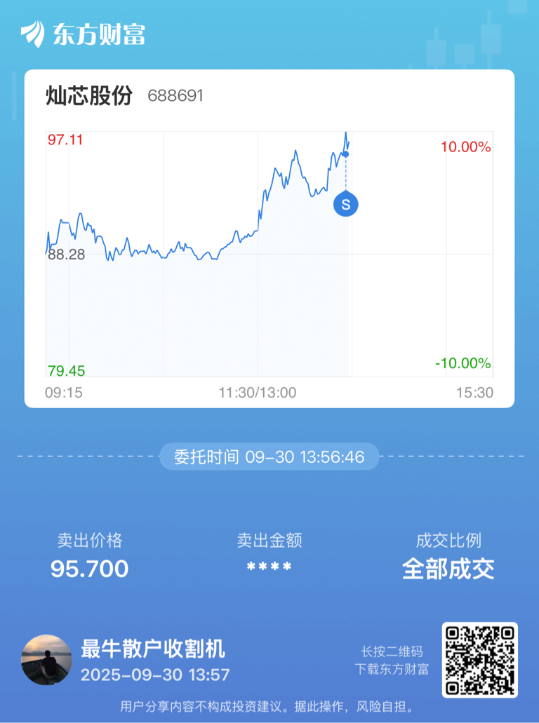 $灿芯股份(SH688691)$ 陪伴了我两个月,今天全部卖出了,感谢