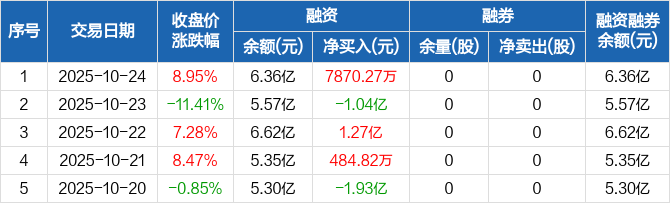 灿芯股份:融资净买入7870.27万元,融资余额6.36亿元(10-24)