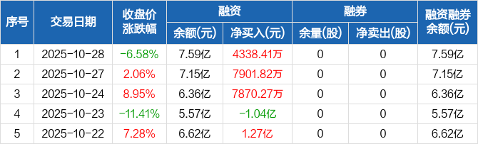 灿芯股份:融资余额7.59亿元,创历史新高(10-28)