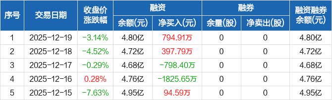 灿芯股份:融资净买入794.91万元,融资余额4.8亿元(12-19)