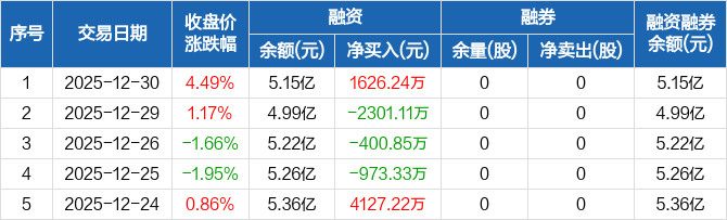 灿芯股份:融资净买入1626.24万元,融资余额5.15亿元(12-30)