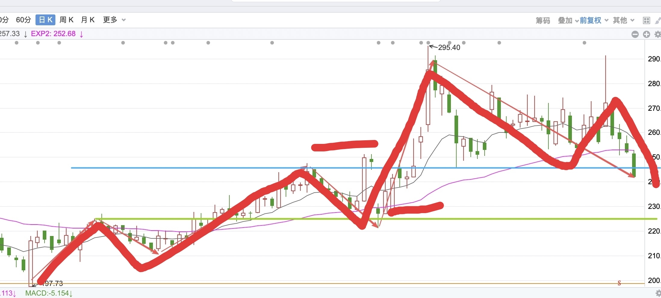 你也可以把下面两个线上移一点,对应5浪理论,上5浪+下3浪abc走完,开启一个新