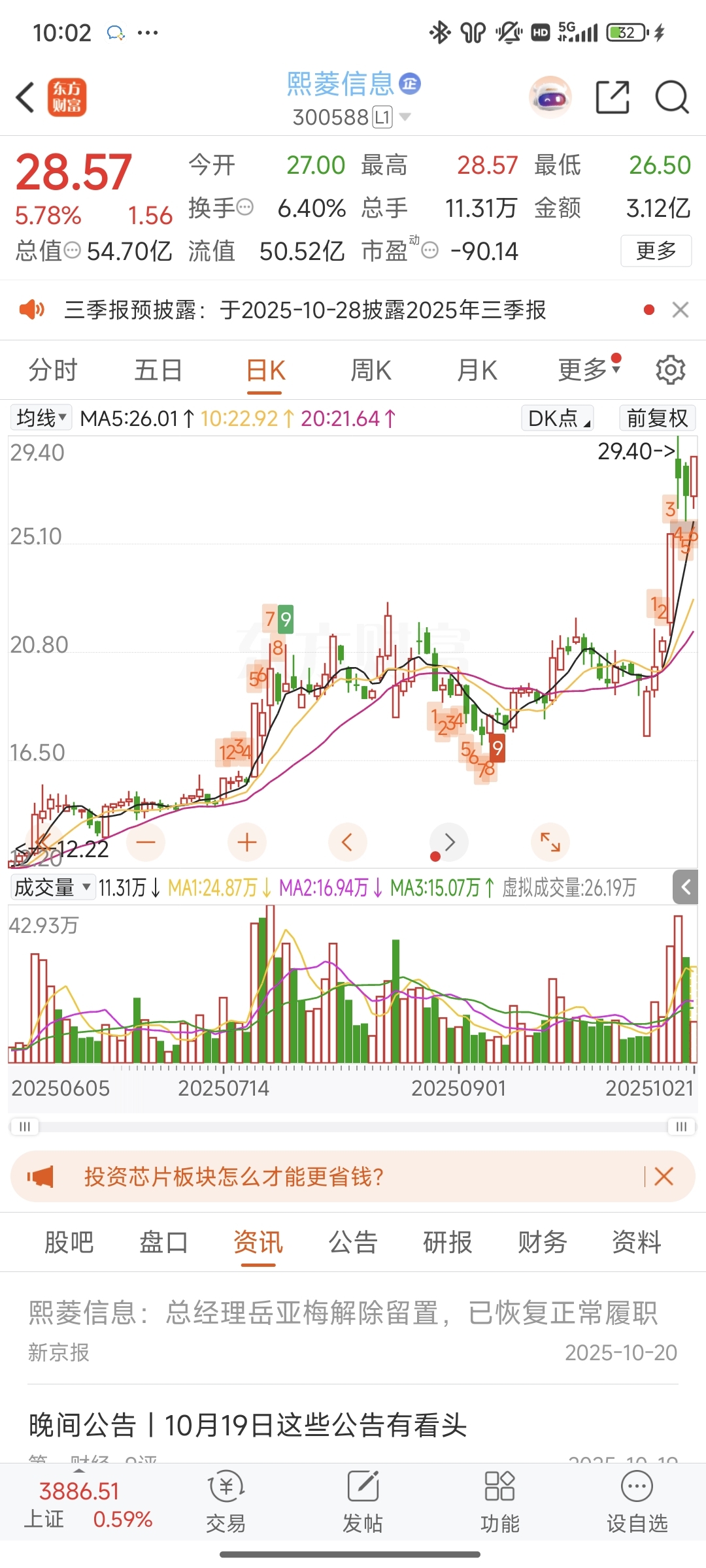 $达梦数据(SH688692)$ 熙菱信息领导层解除留置,股票大涨。